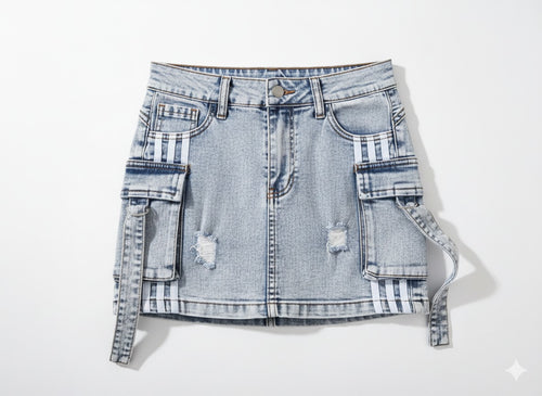 Falda Short Jean Cargo para Mujer